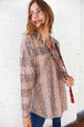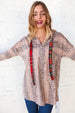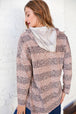 Embolden your winter wardrobe with this vibrant beige striped animal print French terry pullover hoodie with contrasting plaid drawstrings. Stay cozy and stylish!