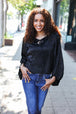 Donning a beautiful silhouette and silky smooth material, get instant chic in this elastic long bubble sleeve blouse. With a front tie and woven texture, this versatile blouse is ready for office attire or your next party