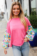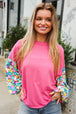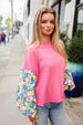 Floral 3/4 Bubble Sleeves + Raglan Design + Terry + Outseam Stitching Sleeves