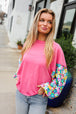 Lightweight and perfect for early spring, add charm to your everyday wear with this raglan designed oversized French Terry pullover featuring three-quarter elastic bubble sleeves and outseam stitch details.