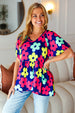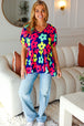 This woven top designed in a babydoll style is adorned with flat floral print and three-quarter length elastic bubble sleeves. A wide V neck completes this adorable style.