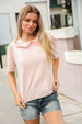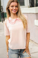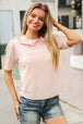 Donning a trendy double flat collar design and floral print, this puff short sleeve top made with cozy French terry is unique and perfect for the new year! Wear with all your denim.
