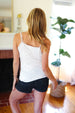 Sale   Peach Wool Dobby V Neck Ruffle Hem Tank Top Sale price $13.99Regular price $14.55