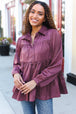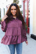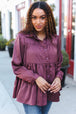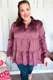 Refresh your holiday closet with the tiered babydoll top. The sleek satin material, and a button-down front complete this gorgeous top.