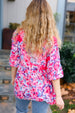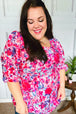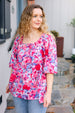 Get ready for date night in this romantic floral print square neck peplum three-quarter elastic sleeve top. A silky woven finish and beautiful drape completes an elegant look.