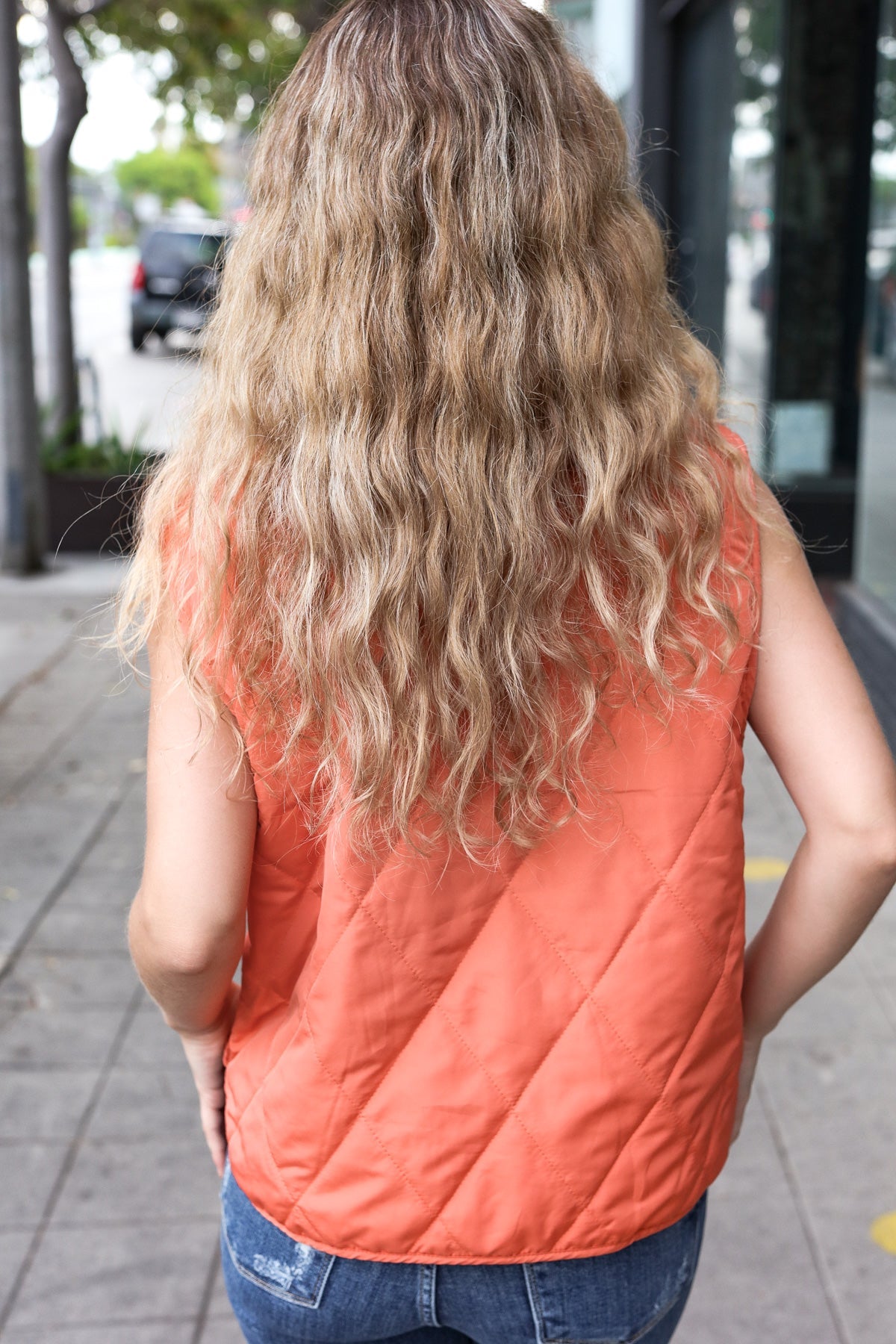 Layer up this season with this high neck puffer vest. Featuring side pockets, a quilted body and snap buttons. Pair with your favorite jeans for an in-style look.