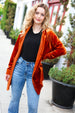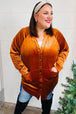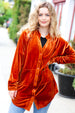 Embolden your closet with this tunic style button down velvet top featuring a raglan design, and front pockets.