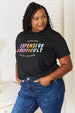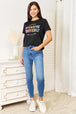The slogan graphic cuffed sleeve t-shirt is a trendy and expressive choice for your wardrobe. With its bold slogan graphic and cuffed sleeves, it adds a stylish and edgy touch to any outfit. Perfect for making a statement and expressing your personal style, this t-shirt is a versatile and fashionable option for casual or dressed-up looks.