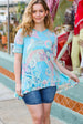 Fall in love with this beautiful paisley print tunic top featuring a elbow length sleeves, and a ruffle hem. With a flattering drape and hi-lo hem, wear for any occasion, day or night!