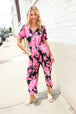 Unique and eye catching describes this wide leg, buttery smooth jumpsuit featuring side pockets, tie bow details, puff ruffle short sleeves and a back neck button. With a trendy hemline above the ankles, turn heads with this casual chic elastic waist jumper!