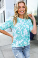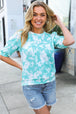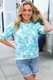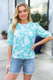 Step into spring with this wavy rib puff banded short sleeve top. With a round neck, banded hemline and big floral print, this adorable top can be tucked in or tucked out.
