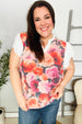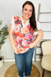Add a touch of adorable to any ensemble with this cozy Hacci big floral print blouse featuring a banded frill V neck and double ruffle fabric short sleeves. Simply sublime.