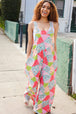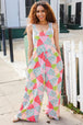 Comfy and whimsical describes this woven jumpsuit made with boho patchwork print, side pockets, wide legs and functional buttons. Be ready to catch glances with this eye-catching bib overall jumpsuit.