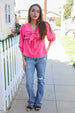 Christmas Ready Black & Fuchsia Reindeer Print Thermal Top