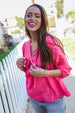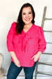 Designed with unique embossed textured knit fabric, this solid mint front ribbon bow tie babydoll blouse will brighten up any room or event you wear it to. With three-quarter length sleeves and a babydoll design, be prepared to stun!