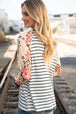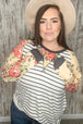 Get instant casual chic style with this lightweight stripe and peach leopard floral print top featuring a color block design and over lock reverse stitch details. Wear over shorts or jeans.