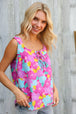 Enjoy the last days of summer in style with this square neck floral sleeveless blouse. With a beautiful drape and front bow ties, look and feel adorable in this summer top!