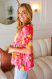 Time For Sun Fuchsia Floral Drop Shoulder Babydoll Top