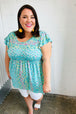 Brighten your closet with this eye catching turquoise floral print top sporting a round neck and ruffle short sleeves. Perfect for your summer festivities, comfy & casual.