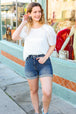 Feeling Femme Ivory Ribbon Bow Tie Folded Puff Sleeve Top Regular price $24.99