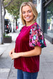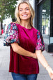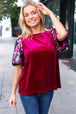 Perfect for the upcoming holiday season! This velvet top with floral sequin puff sleeves will add a touch of glam to any outfit this holiday season.