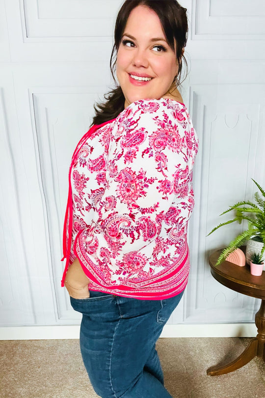 Make A Statement Fuchsia Paisley Boho Front Tie Top