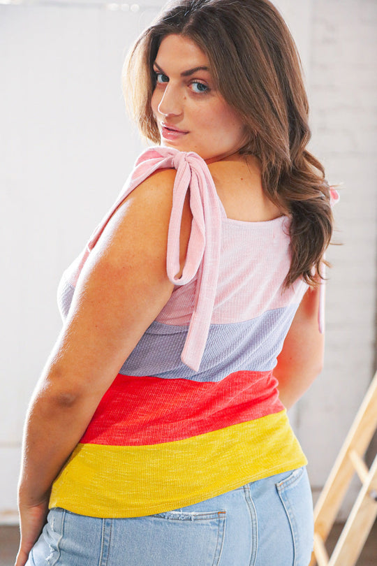 Sale                               Pink/Lavender Waffle Thermal Color Block Slim Fit Top Sale price $8.99Regular price $14.55Confidence is your middle name in this form-flaunting, sleeveless slim top! With combined thermal and waffle knit fabric, this style features feminine shoulder ties and a color block design. Color Block + Shoulder Ties Slim Fit...