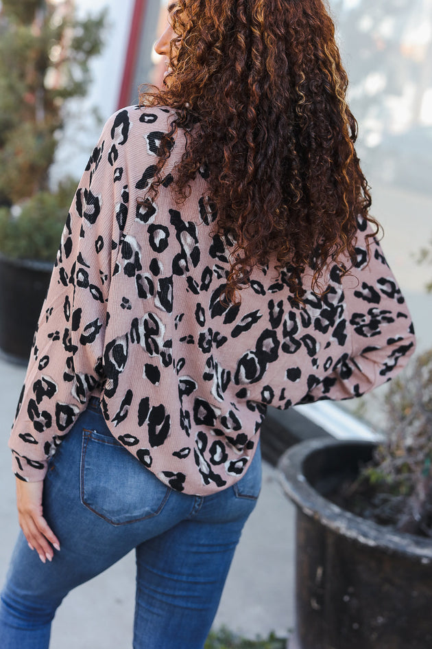 Be Bold Beige Rib Animal Print Button Placard Dolman Pullover Regular price $13.99