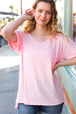 Elevate your average short sleeve top with this trendy piece made with super soft ribbed knit, side slits, v neck and cuffed sleeves. This casual high-low to is super soft and offers comfort for wherever you're headed!
