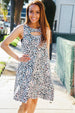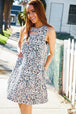 Turn heads with this striking sleeveless peek-a-boo neck swing dress that can be worn with flats, canvas shoes or ankle boots. With side pockets and a flattering drape, this silky dress will be your fav spring staple!