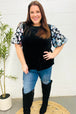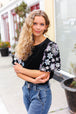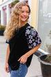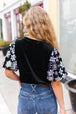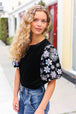 Perfect for the upcoming holiday season! This velvet top with floral sequin puff sleeves will add a touch of glam to any outfit this holiday season.