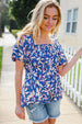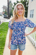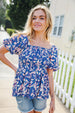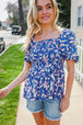Step out in style in this eye-catching square neck bubble short sleeve smocked blouse with a stunning floral print and ruffle hemline. With pulled Merrow stitching detail and a babydoll peplum design, wear up or off shoulder to add charm to any ensemble.