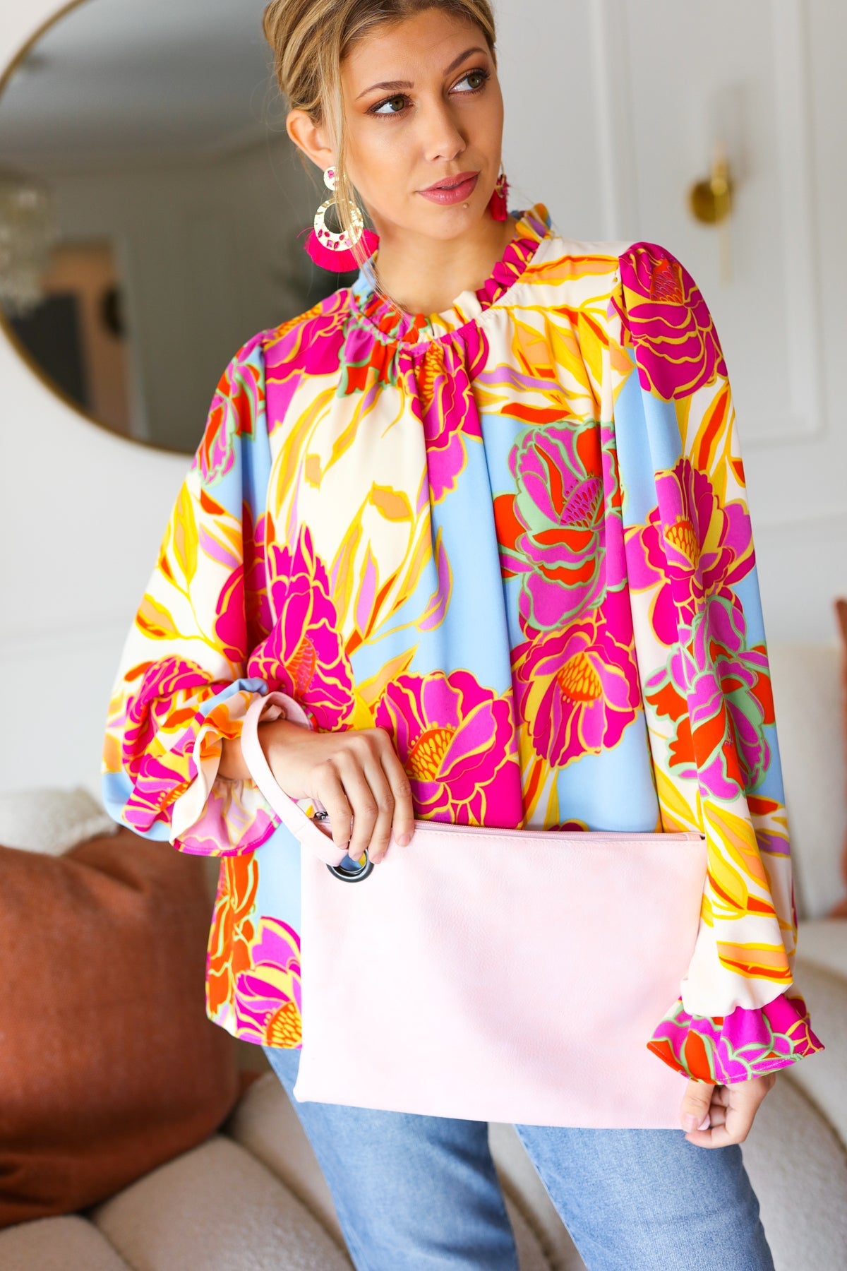 Basic Bae Full Size Round Neck Batwing Sleeve Blouse