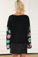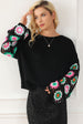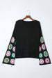 Burgundy Floral Stripe Two Tone Bell Sleeve Knit Top