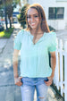 Look elegant and put together with this notched neck blouse featuring smocked short sleeves and front seam details. Slightly textured with a smooth, silky feel, this blouse will look flattering on any body type.