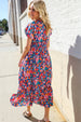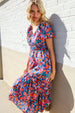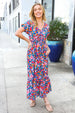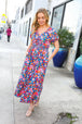 Perfect for Easter, bridal showers or date night, this blue, teal and pink floral smocked waist dress is stunning. With raglan puff sleeves, a banded V neck and side pockets, be prepared to catch glances with this maxi dress!