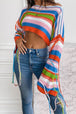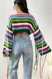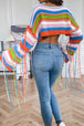 Burgundy Floral Stripe Two Tone Bell Sleeve Knit Top