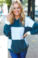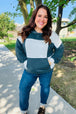 This hunter green checkered color block hoodie is the perfect piece to cozy up in this fall. Outseam stitching, soft French terry and a kangaroo pocket complete this adorable hoodie.