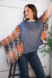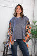 Such a fun statement piece! The paisley floral color block detailing on the sleeves make this poncho stand out in all the best ways.