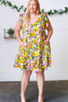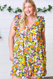 Floral Print + Side Pockets + Ruffle Hem + V Neck