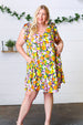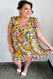 Fall in love with this beautiful indigo flat floral print woven dress featuring a flattering waistline and V neck. With a fit and flare design, cozy side pockets and ruffle sleeves, wear for any occasion, day or night!