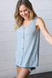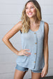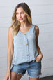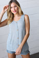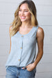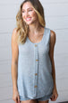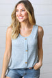 Refresh your everyday style with this lightweight, two tone knit button down detail sleeveless top. An end of season wardrobe staple.