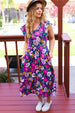 Keep your look breezy and feminine with this floral print ruffle sleeve dress featuring side pockets and a V neck. A fit and flare design completes this midi length dress.