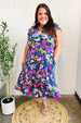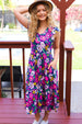 Magenta & White Floral Fit and Flare Sleeveless Maxi Dress