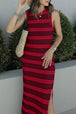 Magenta & White Floral Fit and Flare Sleeveless Maxi Dress