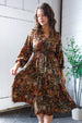 This paisley print dress is one of those eye catching pieces you’ll grab again and again. The fabric has a soft flow to it and the colors mix warm browns, reds and a touch of gold that feel perfect for fall. It’s got a smocked waist that flatters without being tight, plus side pockets (which is always a win). The v-neckline and long sleeves make it good for layering.
