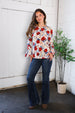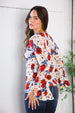 We love this top's beautiful floral print combined with the dramatic bell sleeves. The fabric feels slinky and cool against the skin. It is just so pretty and works for any season.