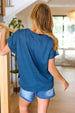 Slip on this USA embossed patch top featuring a notched neck, dolman short sleeves, and side slits. Get your adorable on with this fun patriotic top!