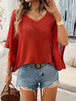 Burgundy Floral Stripe Two Tone Bell Sleeve Knit Top