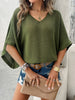 BiBi Cord Rib Combo V Neck Jersey Knit Top